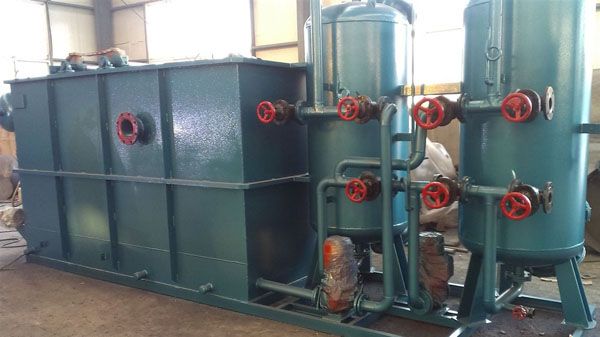 深度處理階段調節池的水經泵提升至氣浮機,先期去除水中懸浮物(ss),去除率達90%以上,出水進入JHYD設備,JHYD設備由(水解酸化池、二級接觸氧化池、沉淀池、消毒池組成),污水在水解酸化池進行酸化處理,通過厭氧菌將大分子有機物轉化成低分子有機物;經水解酸化池流入接觸氧化池進行生化反應后再進入沉淀池,出水經過濾消毒達標排放。